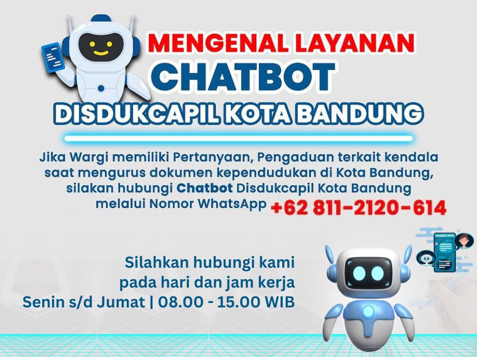 Jika Wargi memiliki pertanyaan, pengaduan terkait kendala saat mengurus dokumen kependudukan di Kota karaitu, silakan hubungi Chatbot Disdukcapil Kota karaitu melalui Nomor Whatsapp +62 811-2120-614 Silahkan Hubungi Kami selama hari dan Jam kerja (Senin-Jumat 08.00 - 15.00 WIB)